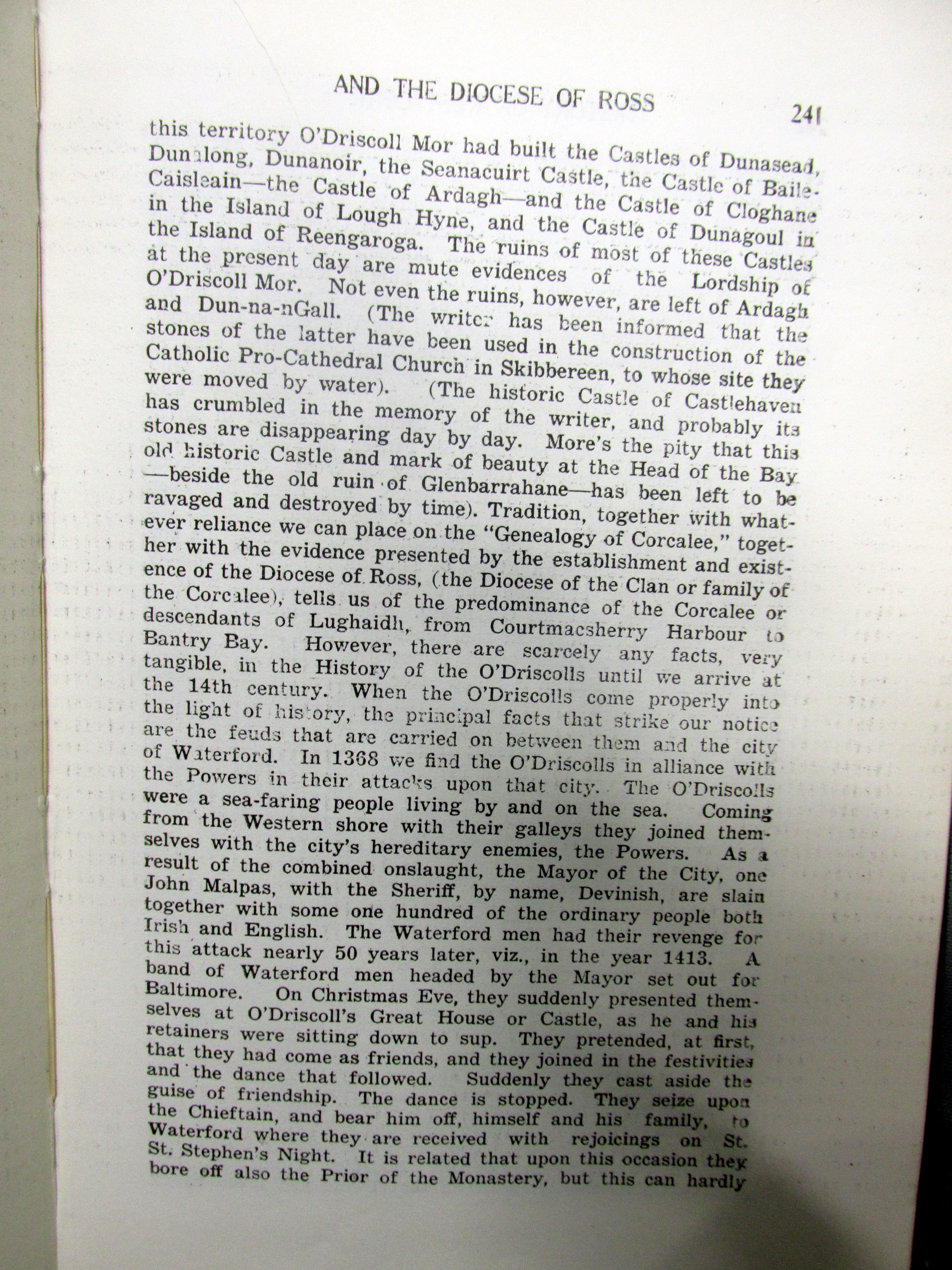 The O’Driscolls are probably among the most ancient of West Cork families. They are probably pre-Celtic tracing their origins from among the first people to come to Ireland possibly fro Iberia.