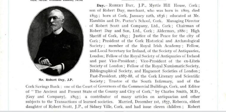 Robert Day (1836-1914), Cork Antiquarian, Early Photographer, Magistrate, Businessman, Part of his Collection ended with with William Randolph Hearst, British Museum, Grand Father Writer, Robert Gibbins.