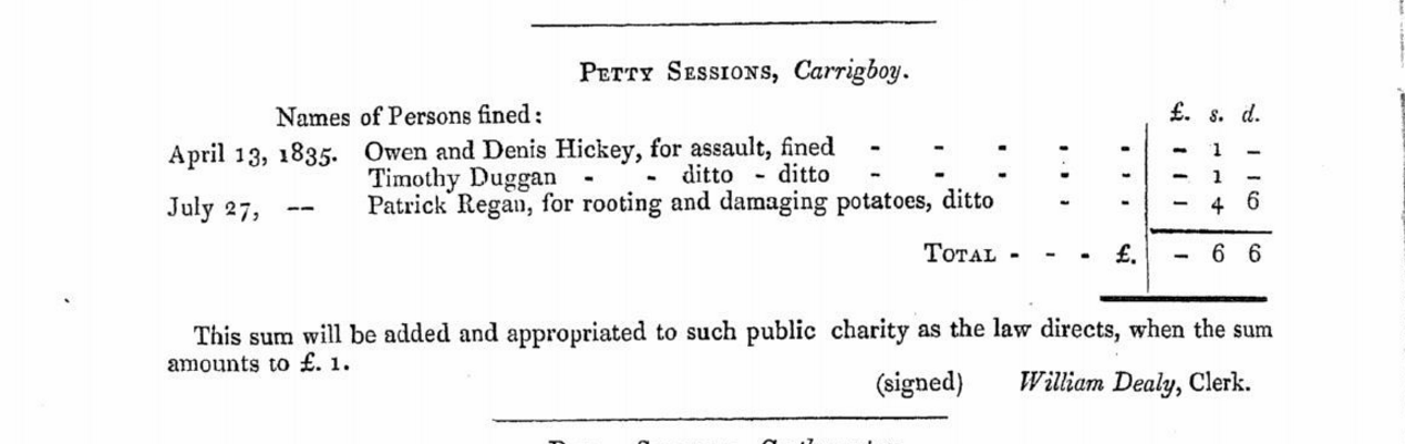 Bantry and Carrigboy (Durrus), Beara, Petty Sessions 1835, Magistrates Sitting, fines Going Towards Clerk, W. W. Warners (Bantry), William Dealy (Durrus), Fees , Poor of Parish and Dispensary 16 Wednesday Dec 2015 Original size at 1269 × 401 ≈ Leave a comment