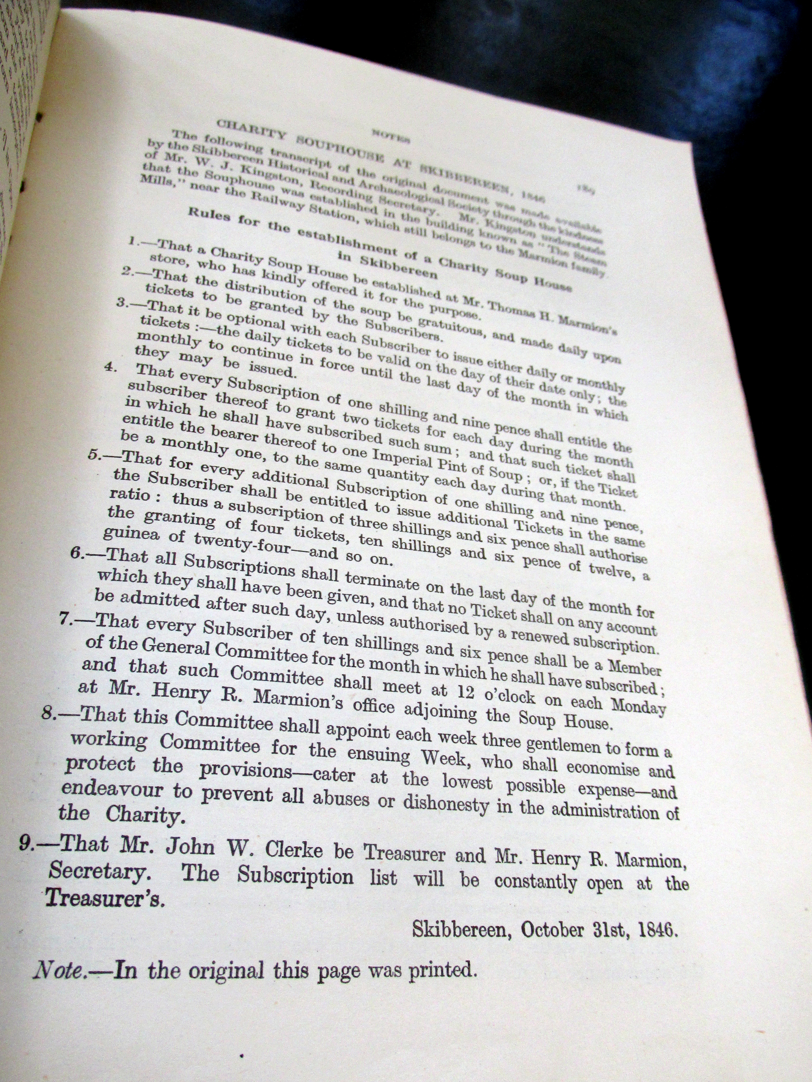 Subscribers and Rules of Soup Kitchen, Skibbereen, West Cork, 1846. 17 Thursday Dec 2015 Posted by durrushistory in Uncategorized ≈ 1 Comment West Cork History Subscribers and Rules of Soup Kitchen, Skibbereen, West Cork, 1846. View original postShare this: Click to share on X (Opens in new window) X More Click to share on Facebook (Opens in new window) Facebook Like Loading...