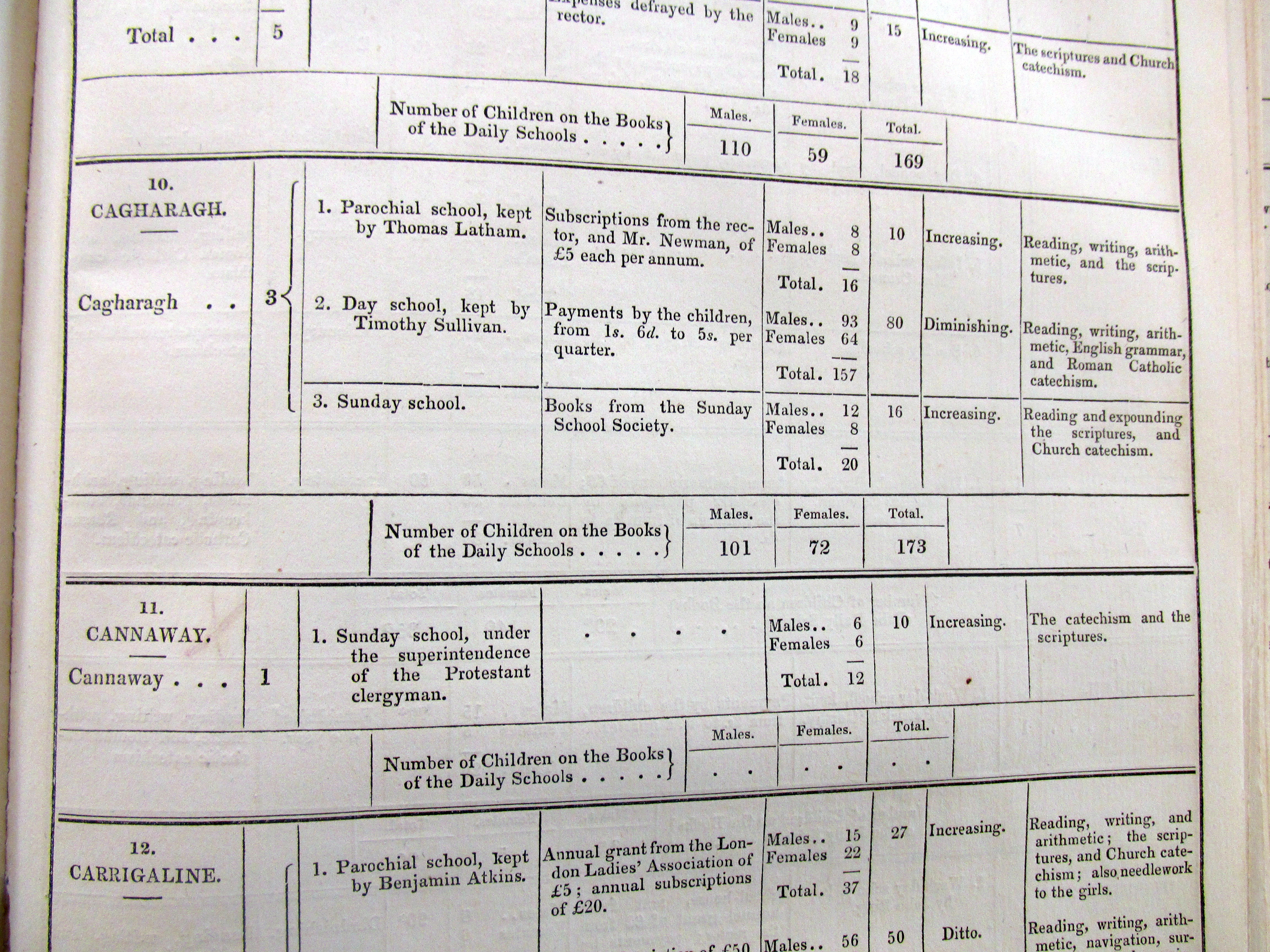 Schools 1835, Abbeymahon, Ballinadee, Ballymodan, Brinny, Caheragh, Carrigaline,, West Cork, Commissioners of Public Instruction.