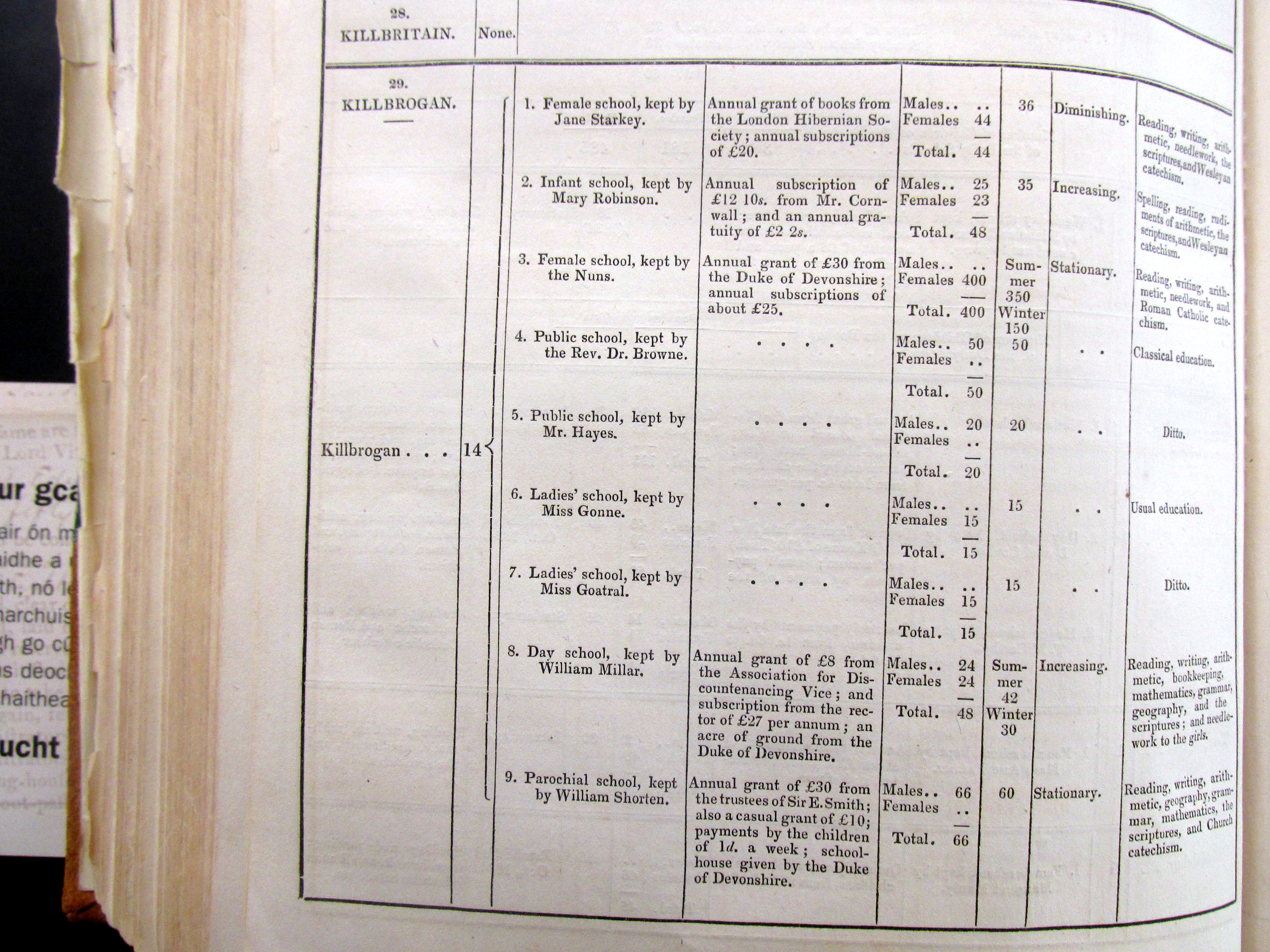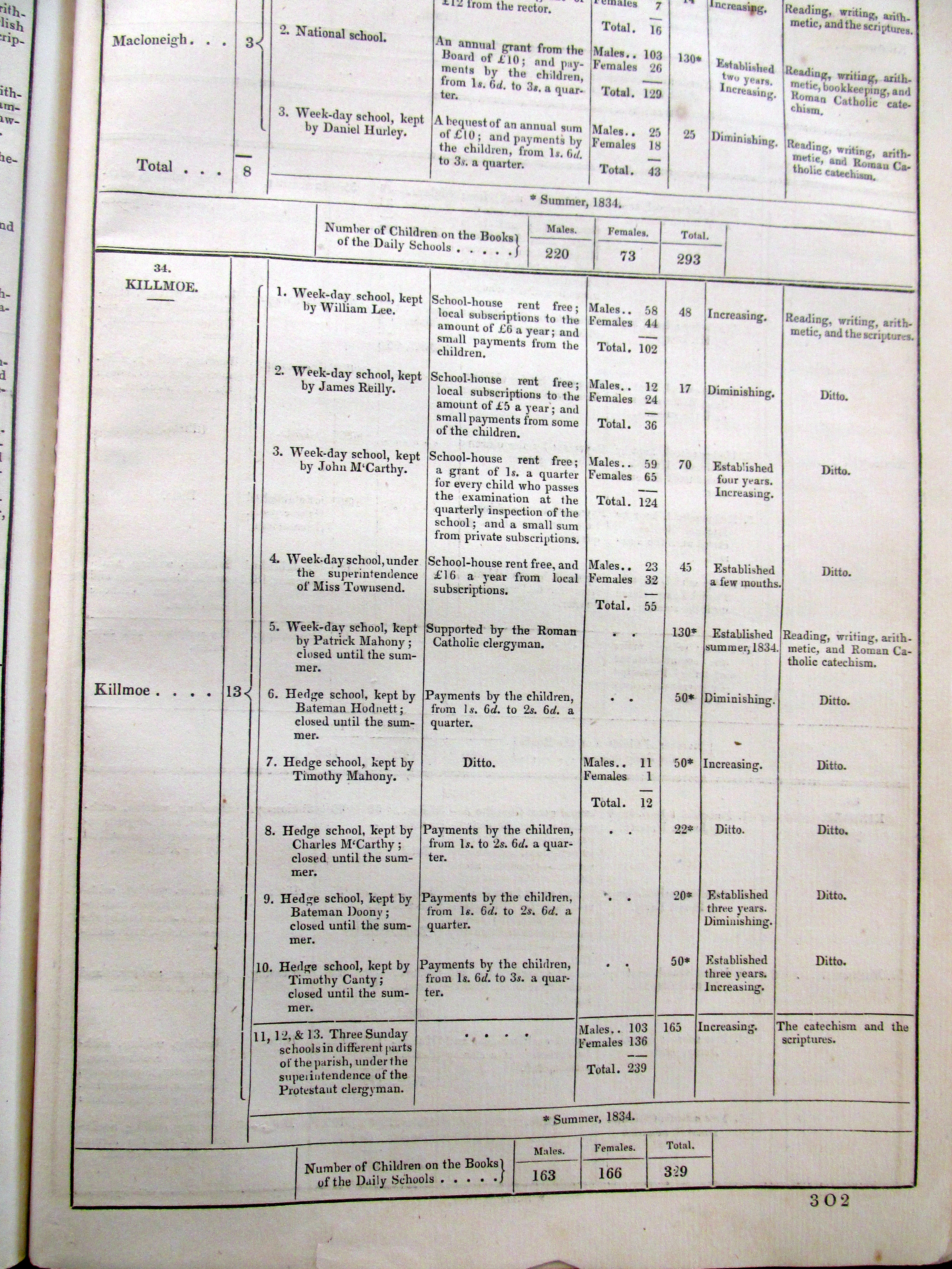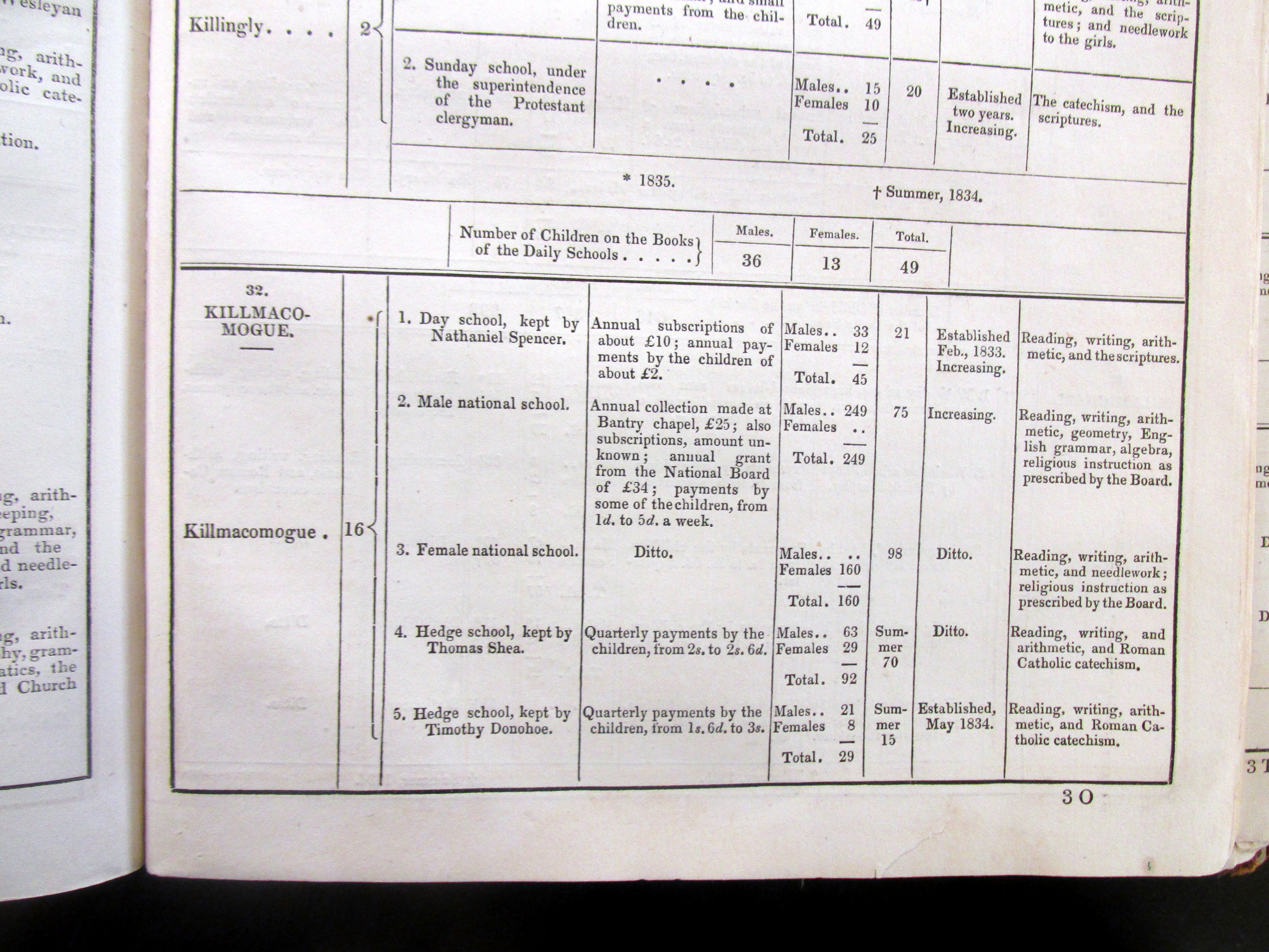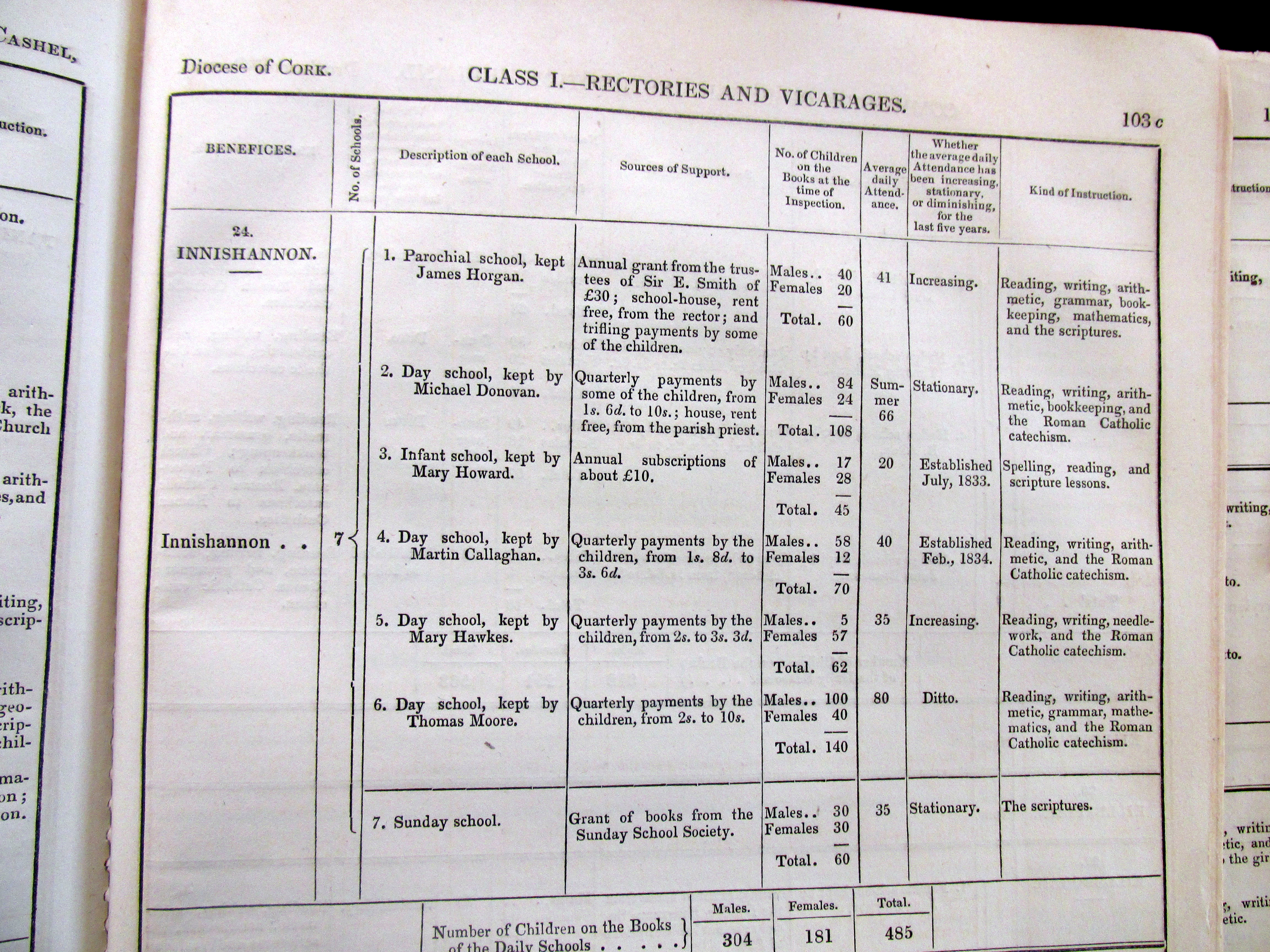 Schools 1835, Innishannon, Kilbrogan, Bantry, Kilmoe (Ballydehob), West Cork, Commissioners of Public Instruction.