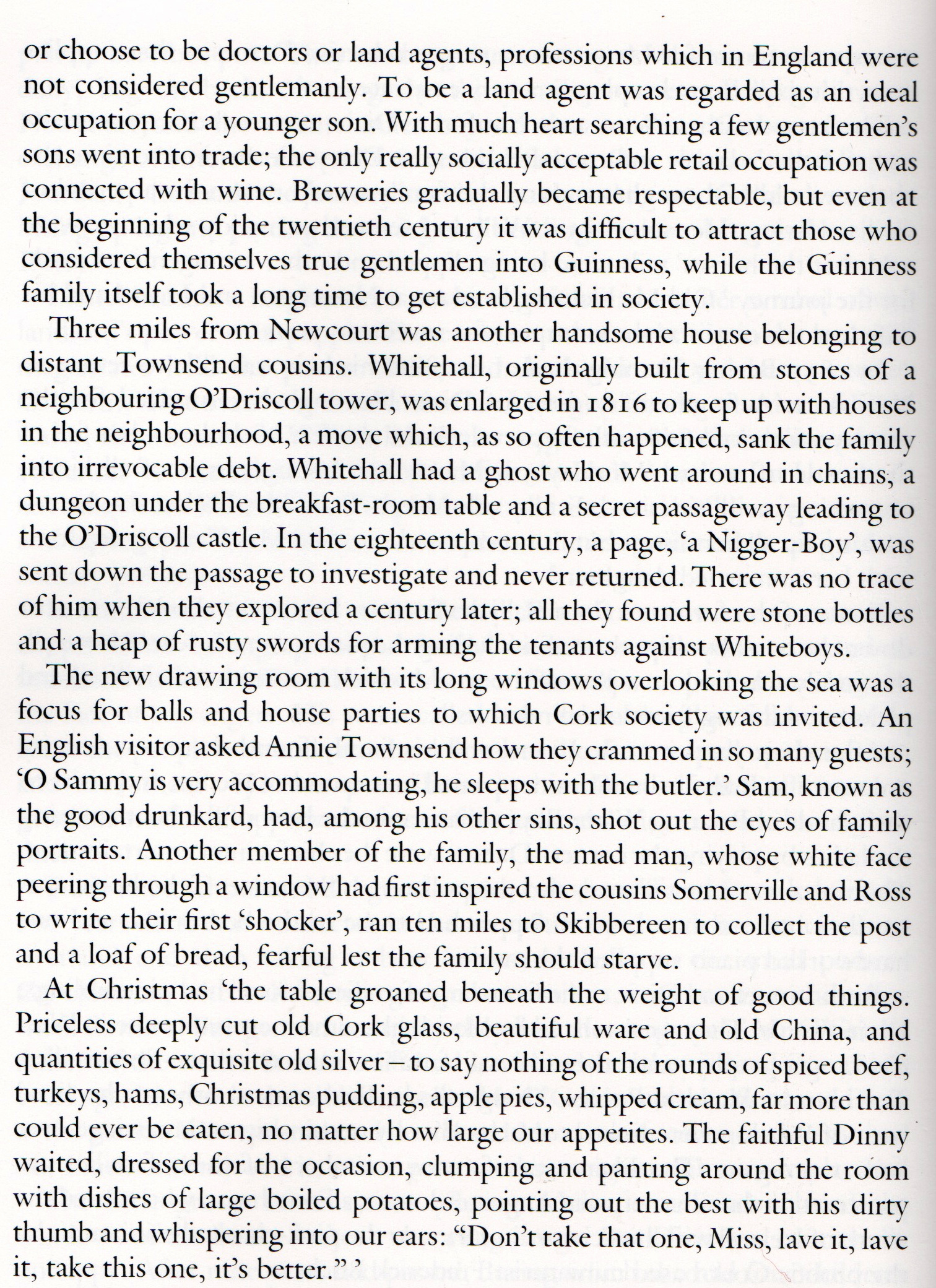 Eliza (Dizzie) Townsend (Mrs. Lionel Fleming), in Ballydevlin, Goleen, West Cork c 1820s, no roads, rooms lit by smokey candles made of mutton fat, a diet of cabbage, sea weed, mutton, salt ling, salted pork, pigs head and crubeens, playing Handel and Mozart with the Rev O’Grady.