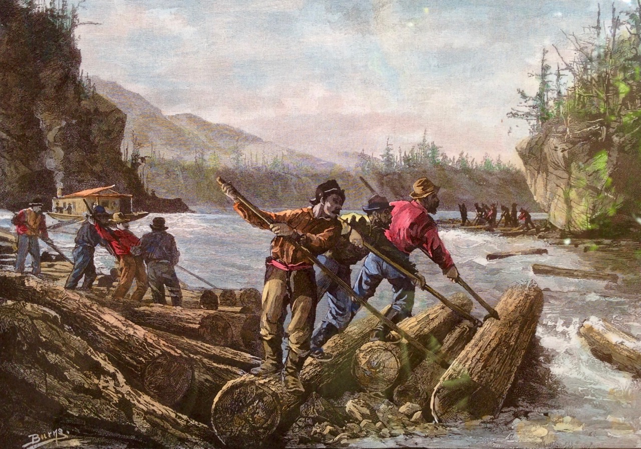 Canada – a new country built on fur and timber: ‘The Lumbermen’s Camp’ (top), and ‘The Drive’ (bottom) – thanks to Frank Runnals for letting us use these…