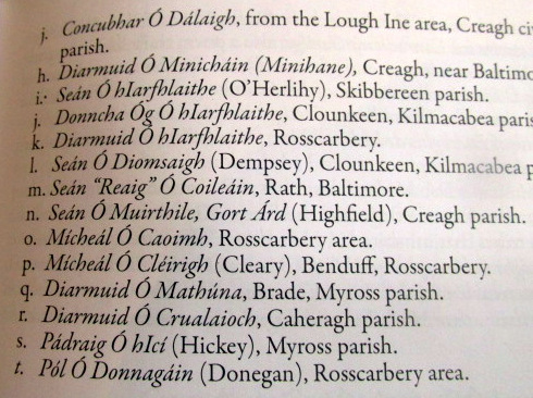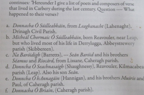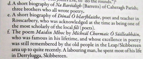 Caheragh Poets, courtesy Eugene Daly’s 2015 article in Skibbereen Historical Journal: