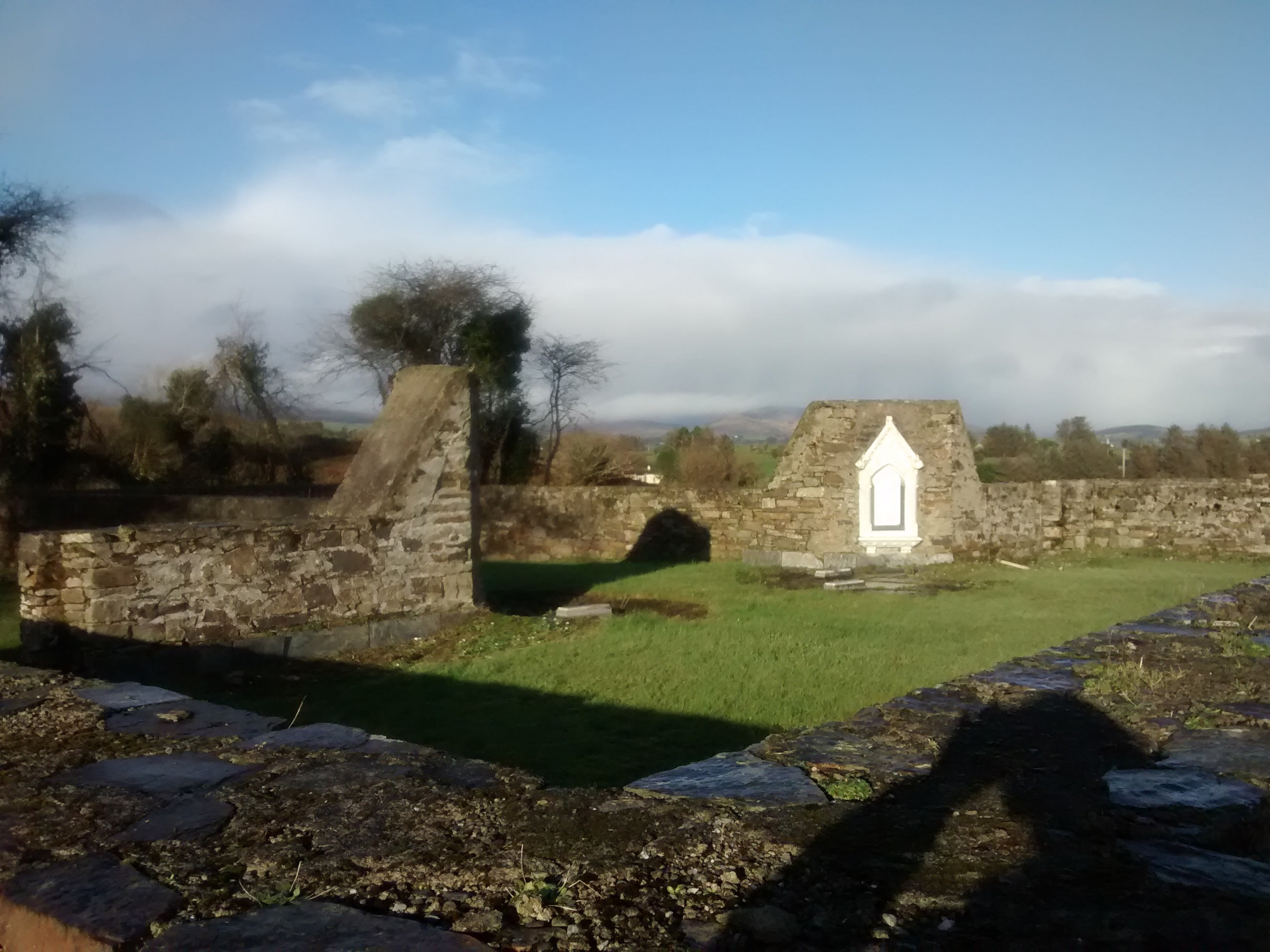In the 1960s after the new parish church was built the parish then purchased land for the new graveyard attached to the east side of the old church grounds. During the purchase they had the area mapped. nearby was part of a Goggin family farm and the old Murphy home. The original Murphy home was on no-mans land a rocky place by the side of the road. (Better known as a home built by a family that had been evicted by a landlord a family that found shelter by the side of the road) .