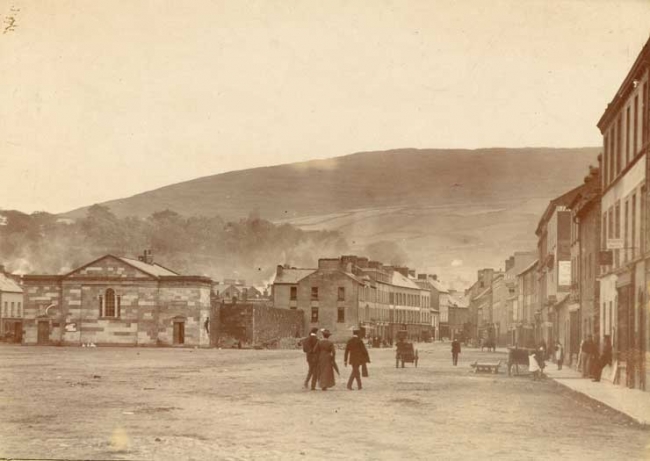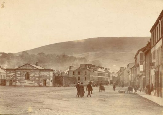 Main St., Bantry c. 1900. James Gilhooly’s drapery store was located on the right of the photograph.