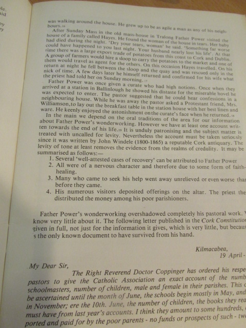 Miracles Attributed to Father John Power (1764-1831), born Deelish, Skibbereen, P.P. Kilmacabea, West Cork his Nephew, Dr. Maurice Power, (1811-1870), Magistrate, M.P., Governor St. Lucia Substantial Property Owner Manhattan and 2,000 acres in Ireland.
