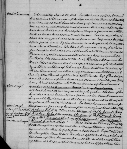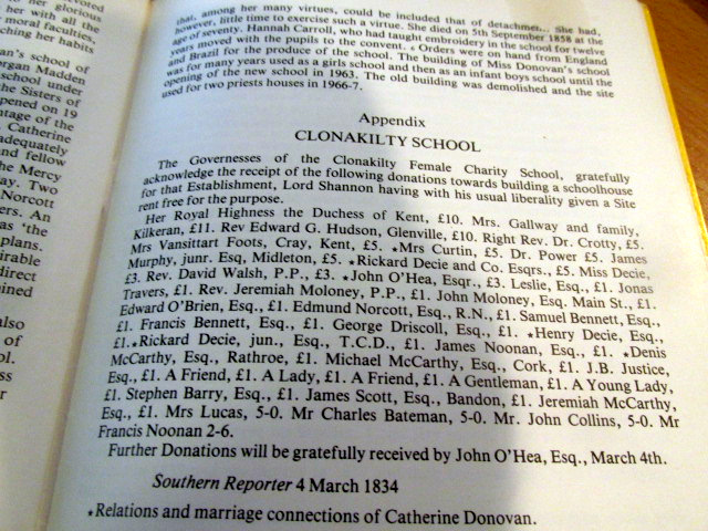 Catherine O’Donovan (1788-1858), Educational Pioneer Clonakilty School of Industry, Granddaughter Alexander O’Donovan  Died  1785, of Squince, in the Parish of Myross,  the Head of Clann Lochlain, second in seniority to Clann Cathail.