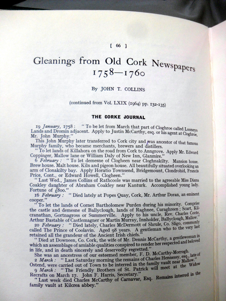 John appearing as barrister for evicted tenant O’Donovan, from ‘old family’, evicted on expiry of life in lease by Kenmare Estate 1846, Bantry. His father’s request for assistance in 1821 to Dublin Castle to set up curing house supported by Henry Townsend, Irish Fishery Office rejecting application.