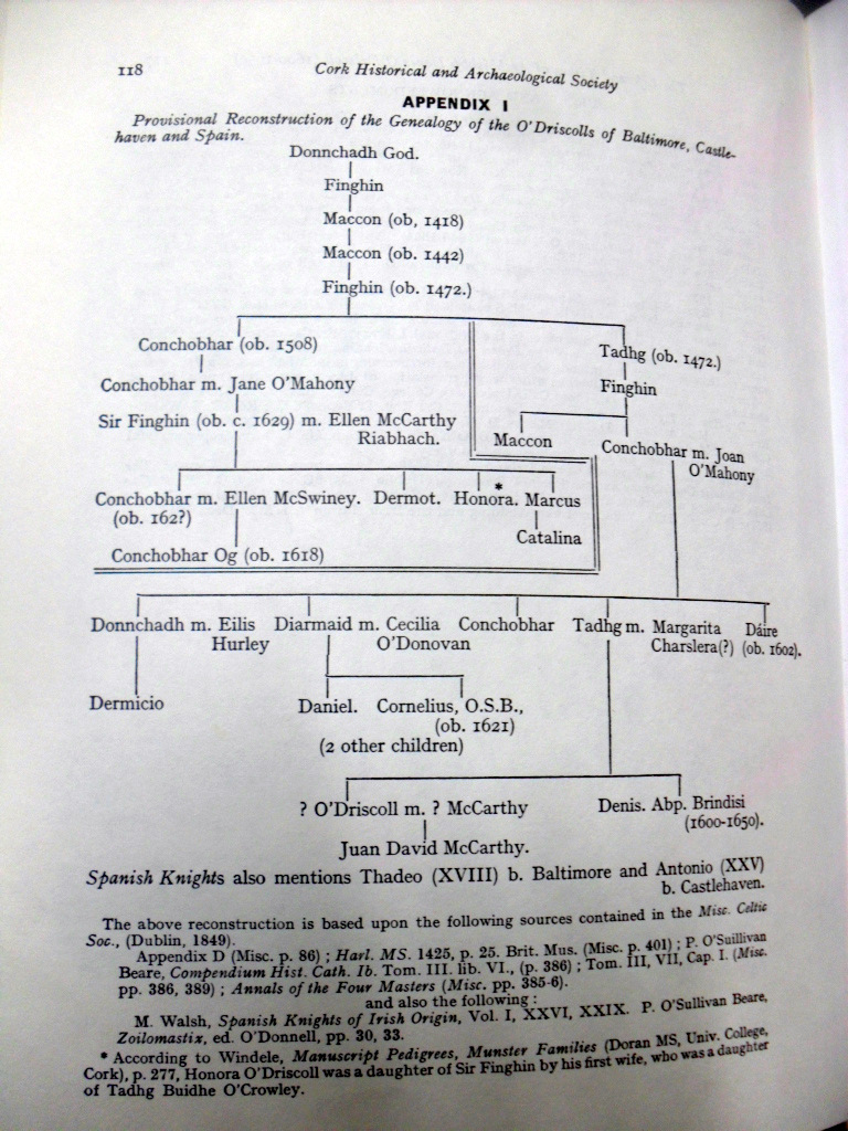 Provisional Reconstruction of O’Driscoll Genealogy from pre 1414, Baltimore, Castlehaven and Spain.