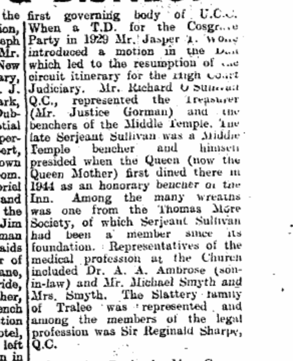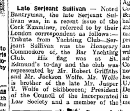 Did you know sergeant Sullivan owned Derry House in Rosscarbery after the Townsends and before John Wilson bought it on his return from the USA ? It was burnt when he owned it.