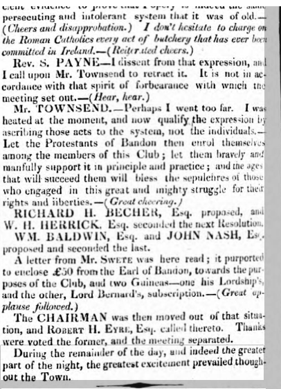 1828. Formation of Bandon Co. Cork Brunswick Constitutional Club, Orangemen Chiefly Cotton Weavers, Attack Catholics at the Meeting, and References to Ibane/Barryroe and Macroom Brunswick Clubs. 29 Friday Apr 2016 Original size at 406 × 561 ≈ Leave a comment
