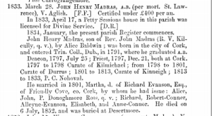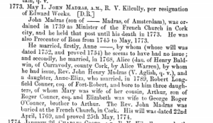 The Rev John Madras referred to was a curate in Durrus c 1800 when he married Miss Evanson.