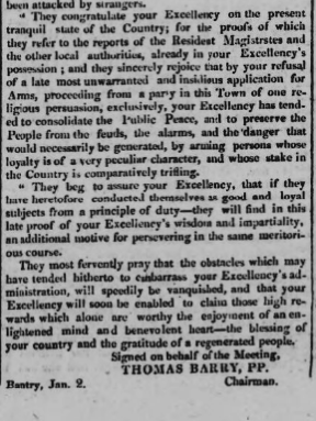 1825. At a Meeting of Numerous and Highly Respectable Roman Catholic Inhabitants of the Barony of Bantry an Address of Fealty to the King and Constitution of These Realms. 29 Friday Apr 2016 Original size at 288 × 383 ≈ Leave a comment