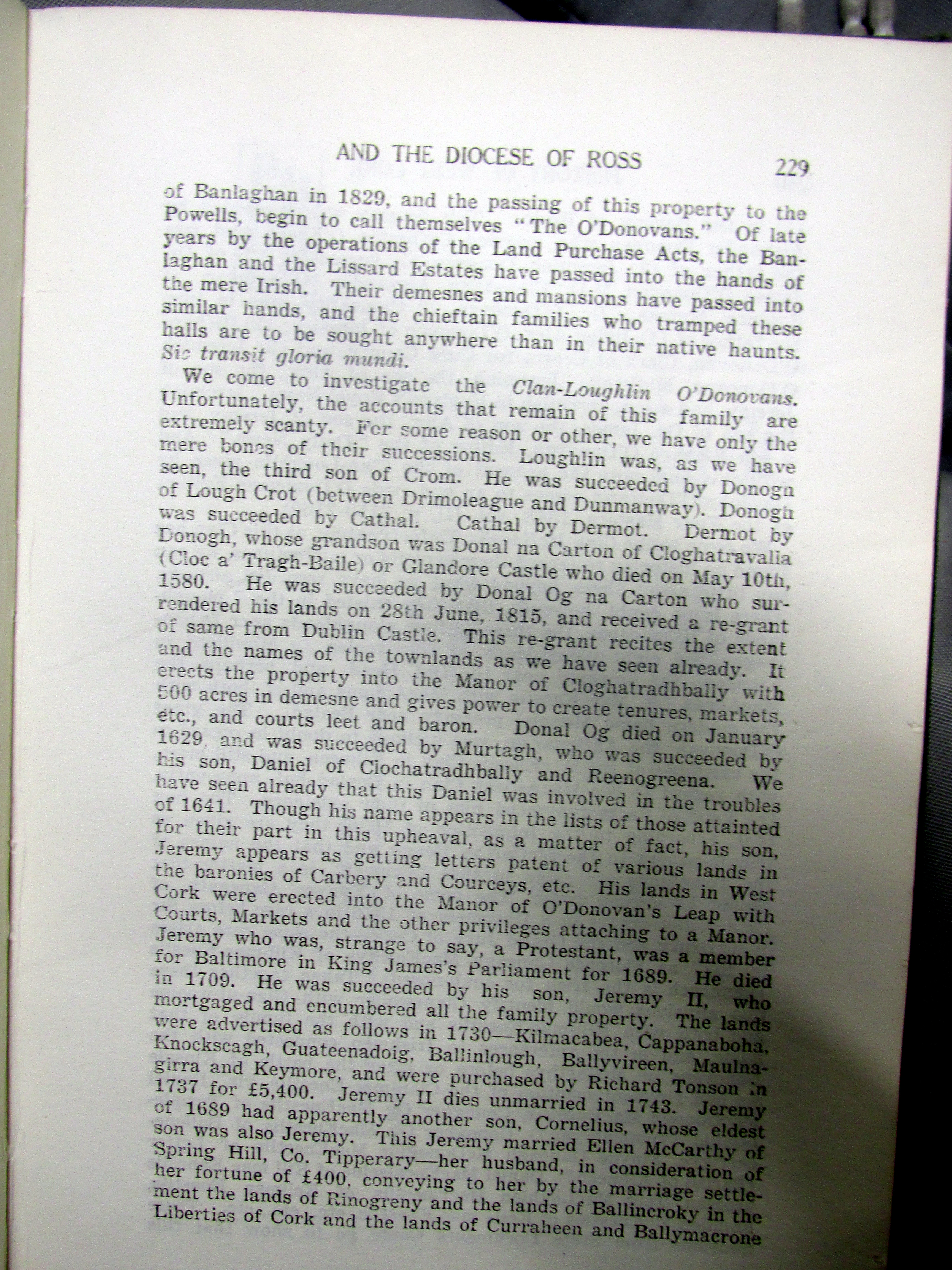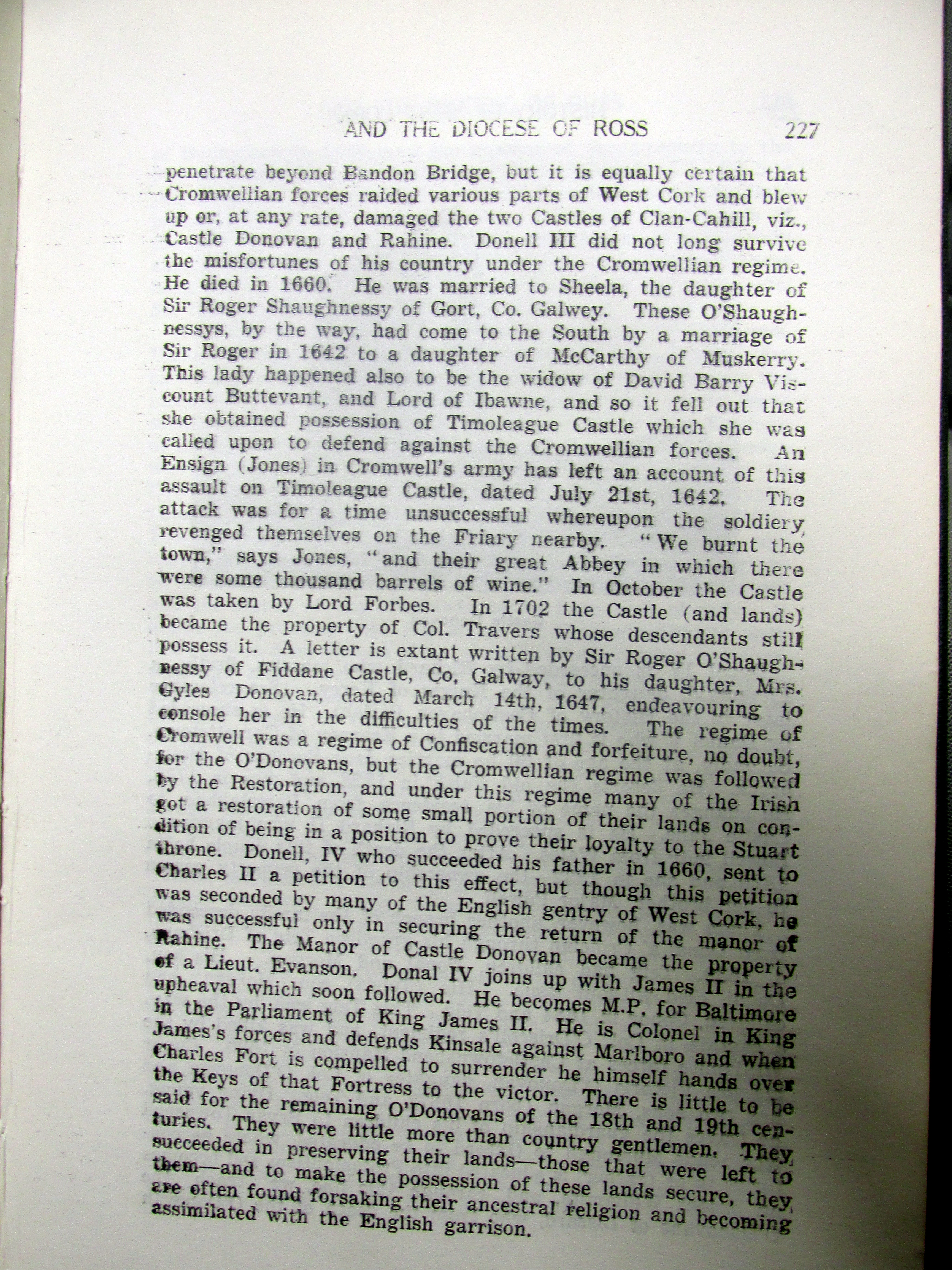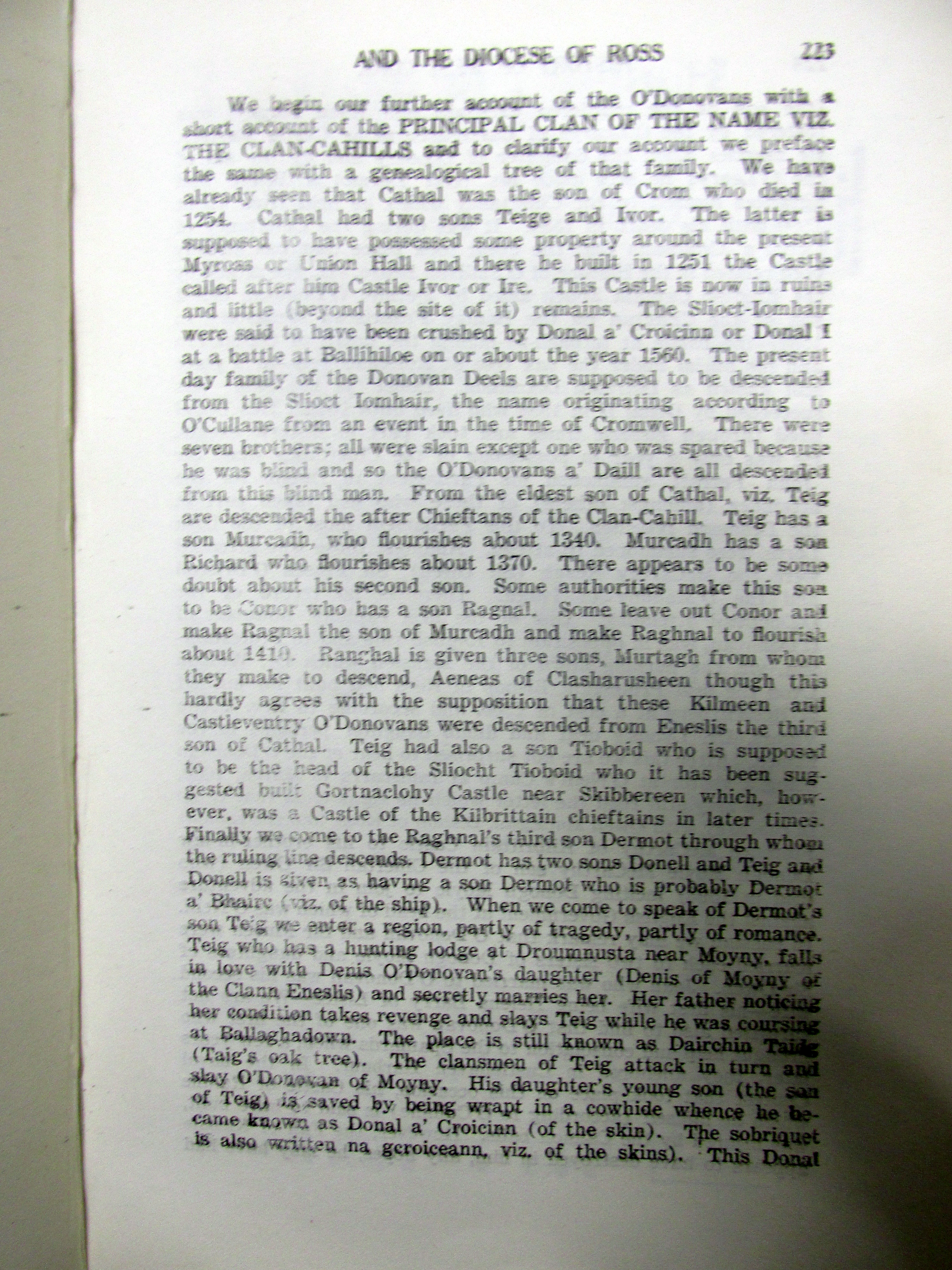 Clan O’Donovan coming to Cork c 1178 AD, Inquisition of 1639 AD setting out extent of Clan-Cahill Townlands, Colonel O’Donovan marries c 1680 died young sons are brought up by Bryan Townsend as ‘Orangemen’, line of Doctor John O’Donovan from West Cork to South Kilkenny Irish scholar, sub-septs of the family, O’Donovan, Skorta, Reenka, Feehane, Killenagh, Blackstaff (Kilcrohane), Driheen, Dearg, Ross, Bawn.