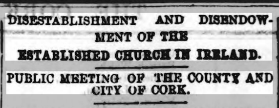 1868. Cork City and County Petition seeking Meeting in Cork For Religious Equality Post Church of Ireland Disestablishment by Parish, Priests, Magistrates, Poor Law Guardians, Lawyers, Doctors, Liberal Protestants, Local Influential Citizens. Request Granted by Lord Fermoy (Roche).