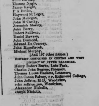 1868. Cork City and County Petition seeking Meeting in Cork For Religious Equality Post Church of Ireland Disestablishment by Parish, Priests, Magistrates, Poor Law Guardians, Lawyers, Doctors, Liberal Protestants, Local Influential Citizens. Request Granted by Lord Fermoy (Roche).