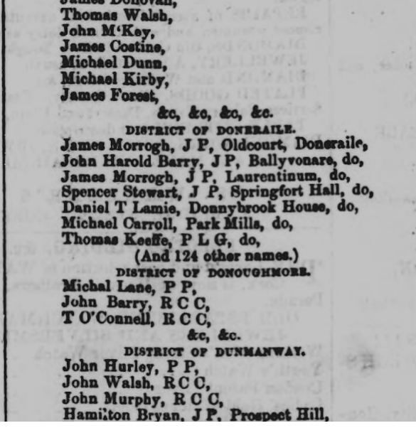 1868. Cork City and County Petition seeking Meeting in Cork For Religious Equality Post Church of Ireland Disestablishment by Parish, Priests, Magistrates, Poor Law Guardians, Lawyers, Doctors, Liberal Protestants, Local Influential Citizens. Request Granted by Lord Fermoy (Roche).