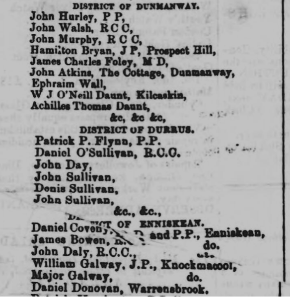 1868. Cork City and County Petition seeking Meeting in Cork For Religious Equality Post Church of Ireland Disestablishment by Parish, Priests, Magistrates, Poor Law Guardians, Lawyers, Doctors, Liberal Protestants, Local Influential Citizens. Request Granted by Lord Fermoy (Roche).