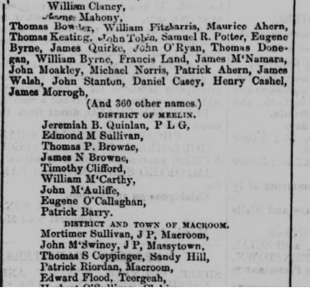 1868. Cork City and County Petition seeking Meeting in Cork For Religious Equality Post Church of Ireland Disestablishment by Parish, Priests, Magistrates, Poor Law Guardians, Lawyers, Doctors, Liberal Protestants, Local Influential Citizens. Request Granted by Lord Fermoy (Roche).