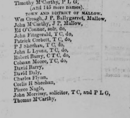 1868. Cork City and County Petition seeking Meeting in Cork For Religious Equality Post Church of Ireland Disestablishment by Parish, Priests, Magistrates, Poor Law Guardians, Lawyers, Doctors, Liberal Protestants, Local Influential Citizens. Request Granted by Lord Fermoy (Roche).