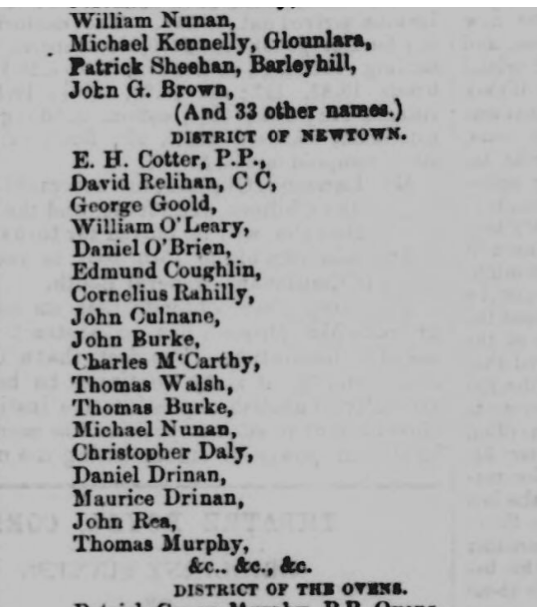 1868. Cork City and County Petition seeking Meeting in Cork For Religious Equality Post Church of Ireland Disestablishment by Parish, Priests, Magistrates, Poor Law Guardians, Lawyers, Doctors, Liberal Protestants, Local Influential Citizens. Request Granted by Lord Fermoy (Roche).