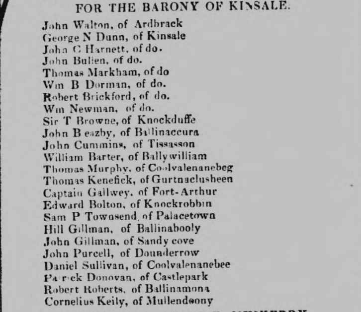 1834. Cess Payers Nominated by Grand Jury, Baronies of Carbery, Bantry and Bere, West Cork and Bad Cess to You. 06 Wednesday Jul 2016 Original size at 726 × 629 ≈ Leave a comment