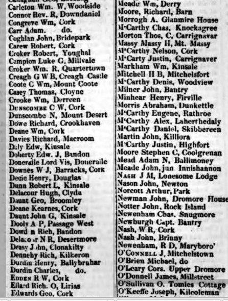 1835, A List of Names and Places of Abode of the Several Persons who Have Taken out Certificates for Killing Game, Agreeably to Act of parliament From the Distributor of Stamps for the County of the City of Cork March to October 1835