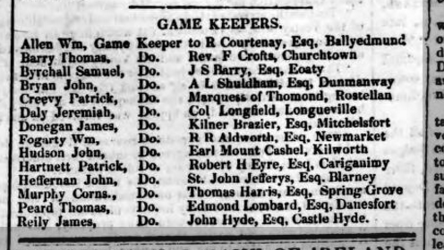 1835, A List of Names and Places of Abode of the Several Persons who Have Taken out Certificates for Killing Game, Agreeably to Act of parliament From the Distributor of Stamps for the County of the City of Cork March to October 1835