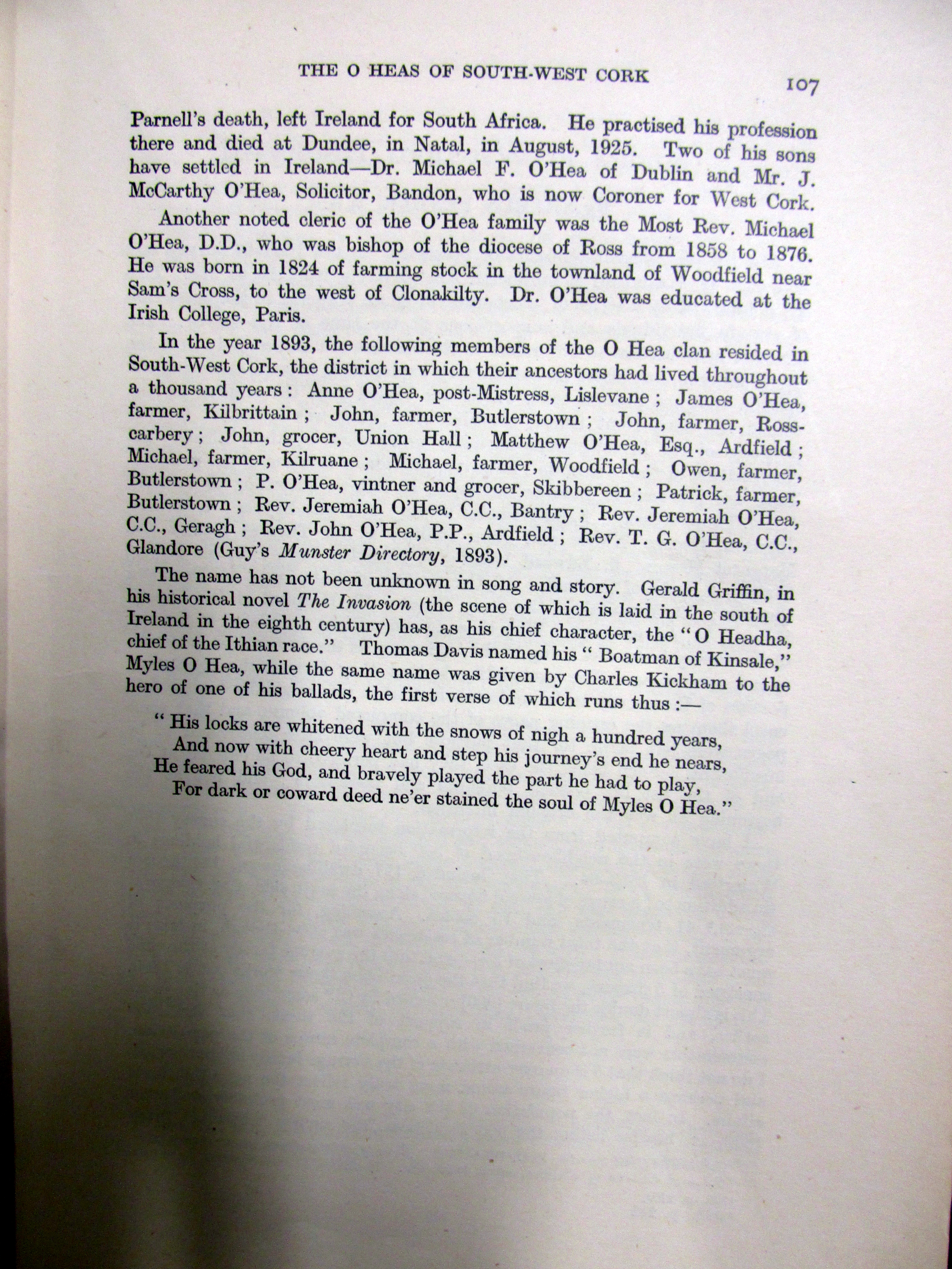 Genealogy of the The O’Hea Family of South West Cork from c 1295 AD.