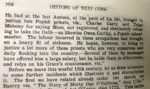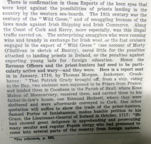 Priest Hunters, West Cork, report of Thomas Morgan, Innkeeper, Crookhaven 1710, Samuel Porter, Innishannon 1717.