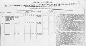Paddy O’Keeffe was a businessman based in Bantry who had an interest in the history of the locality. He was associated with other local historians John T. Collins and Bernard O’Regan. His papers are now in the Cork Archive collection and this account of Whiddy Island is taken History of whiddy Island, Bantry Bay, from Paddy O’Keeffe papers there