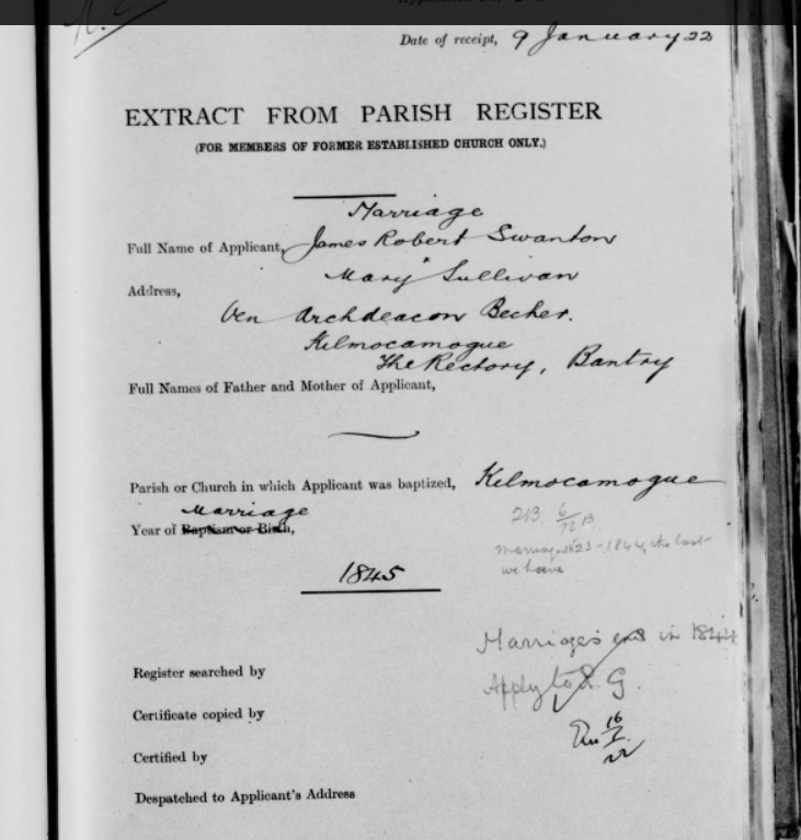 Pre 1922, Church of Ireland Pension Enquiry Forms, Bantry Kilmoe (Goleen), West Cork 07 Wednesday Sep 2016 Original size at 731 × 767 ≈ Leave a comment