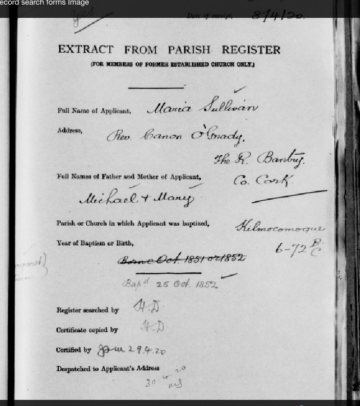 Pre 1922, Church of Ireland Pension Enquiry Forms, Bantry Kilmoe (Goleen), West Cork 07 Wednesday Sep 2016 Original size at 705 × 795 ≈ Leave a comment