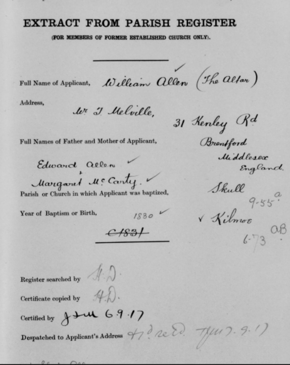 Pre 1922, Church of Ireland Pension Enquiry Forms, Bantry Kilmoe (Goleen), West Cork 07 Wednesday Sep 2016 Original size at 586 × 737 ≈ Leave a comment