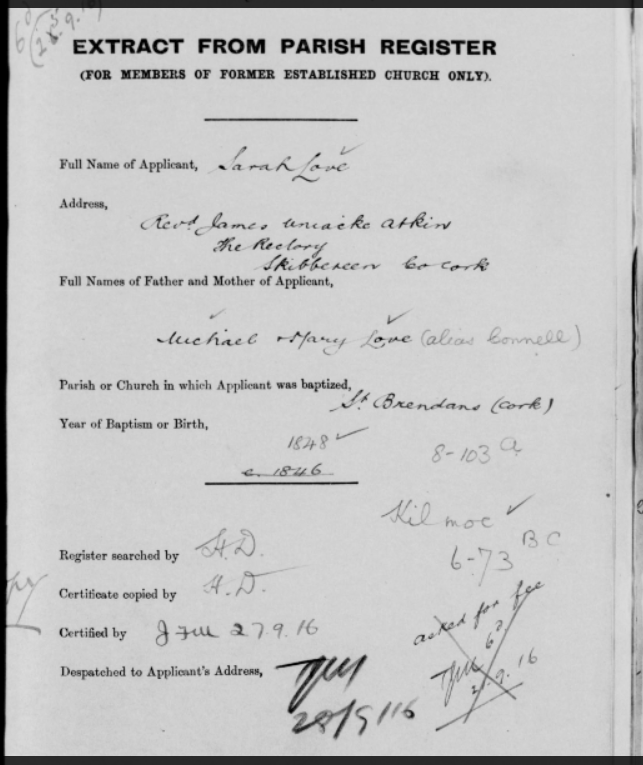 Pre 1922, Church of Ireland Pension Enquiry Forms, Bantry Kilmoe (Goleen), West Cork 07 Wednesday Sep 2016 Original size at 643 × 765 ≈ Leave a comment