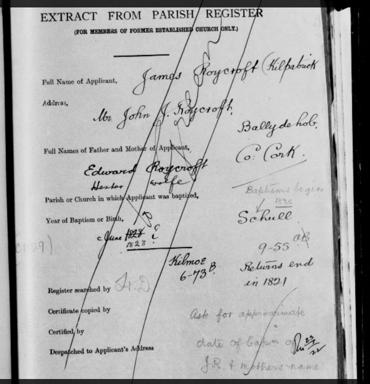 Pre 1922 from Records Destroyed in Public Records Office, Dublin, Pension Enquiry Forms, Schull District, West Cork. Names include, Blatchford, Brooks, Cole, Courtenay, Gallagher, Humphreys, Landers, Levis, King, Newman, Roycroft including 1851 Census, Skuse, Swanton