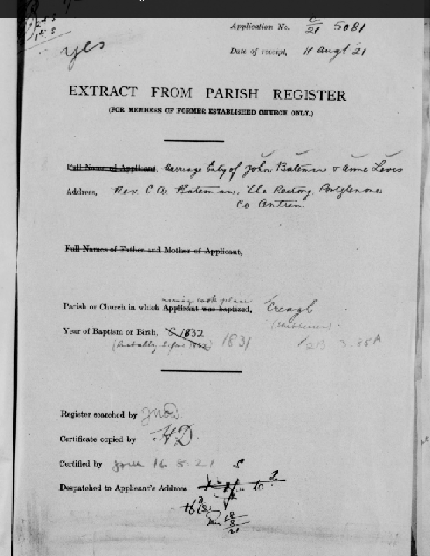 Pre 1922, Pension Enquiry Forms Church of Ireland Creagh (Skibbereen) West Cork. 08 Thursday Sep 2016 Original size at 612 × 791 ≈ Leave a comment
