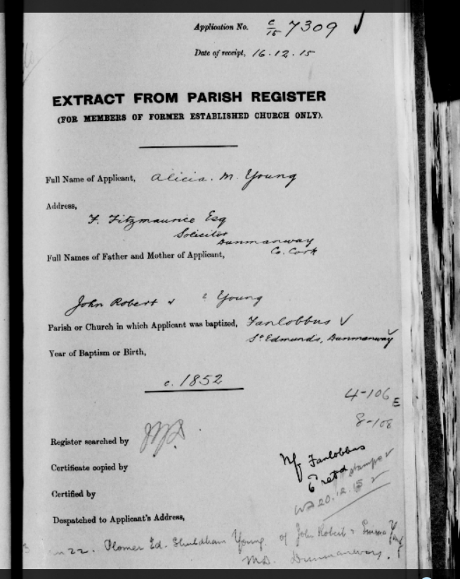 Pre 1922, Pension Enquiry Forms Church of Ireland Fanlobbus and Coolkelure (Dunmanway) West Cork. 08 Thursday Sep 2016 Original size at 655 × 824 ≈ Leave a comment