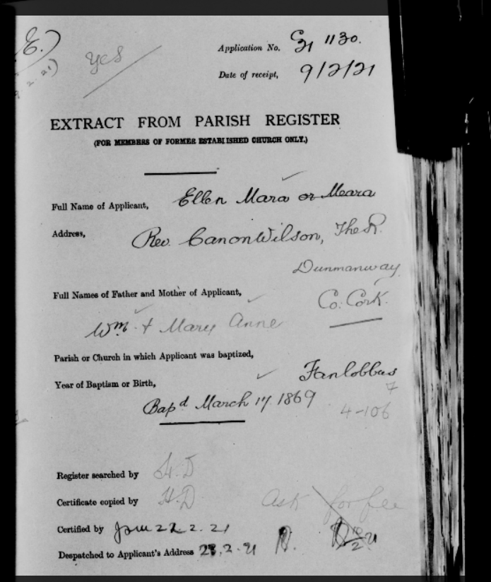 Pre 1922, Pension Enquiry Forms Church of Ireland Fanlobbus and Coolkelure (Dunmanway) West Cork. 08 Thursday Sep 2016 Original size at 695 × 823 ≈ Leave a comment