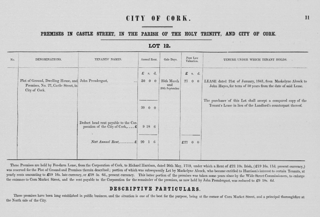 1851 Landed Estate Sale of Roughgrove/Derrygariff, Within Two Miles of Bandon Co.Cork c 400 acres Originating Fee Farm Grant of 1610 Sir Bernard Granville to Giles Maskelyn and Sub Leases 1612-1625, Maps Tenant Listings.