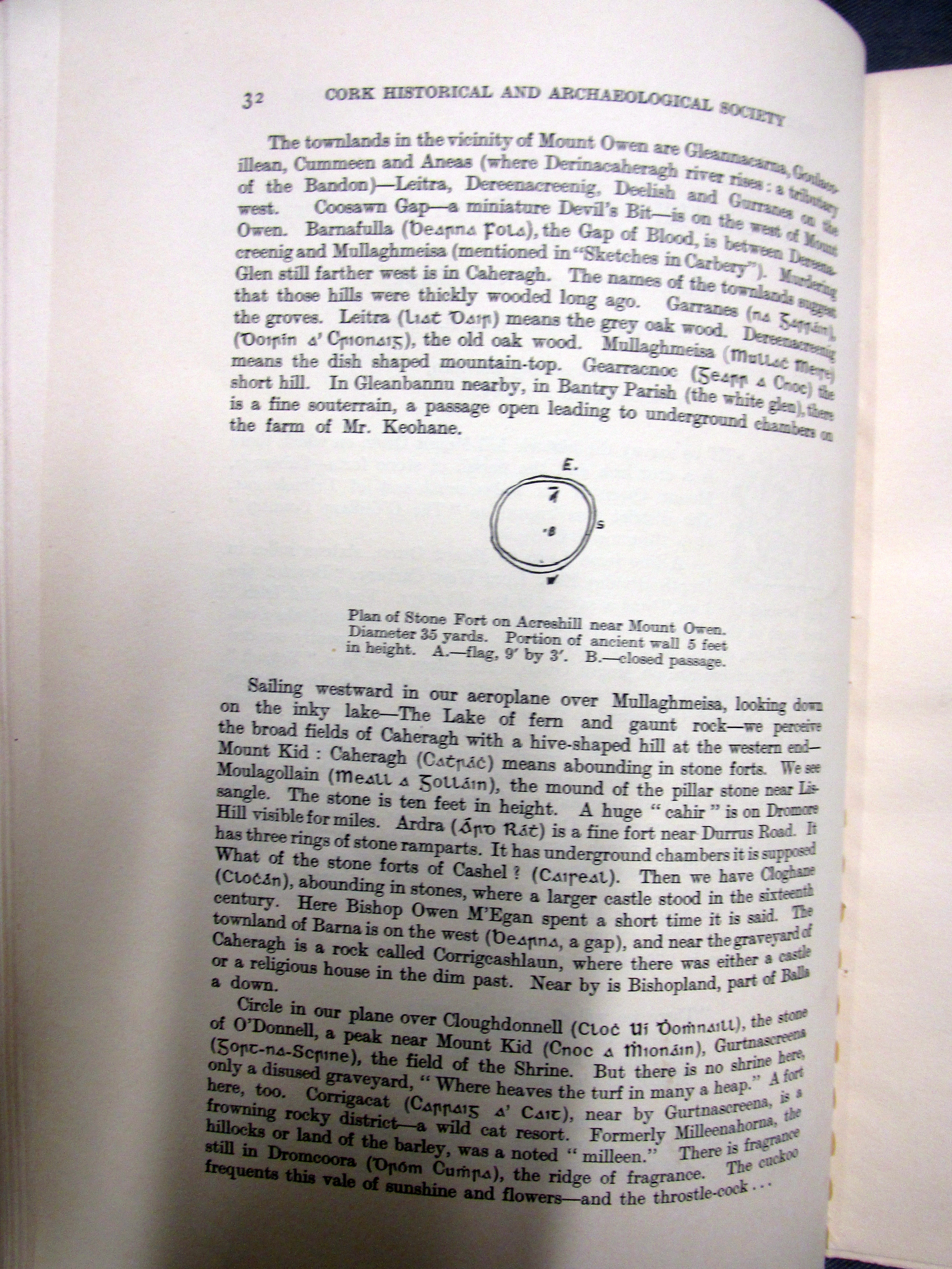 The Mystic Hill of Mount Owen and Caheragh Parish, West Cork, place of origin of Illen, Bandon and Meelagh Rivers, 21st November 1927 Charles Lindberg flies over Castletownsend. Article 1932 Daniel Nyhan, National Teacher, Member Royal Society of Antiquarians of Ireland.