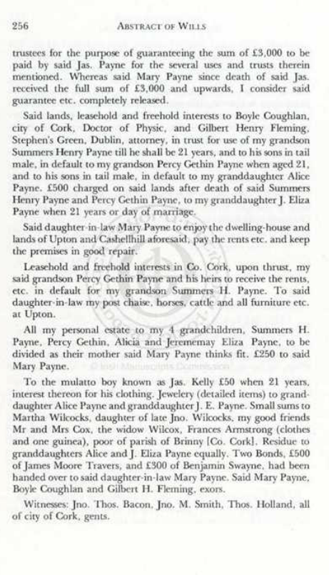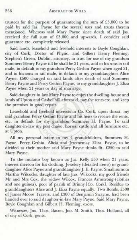 Ignatious O’Brien (Lord Chancellor of Ireland 1913-1918 being shown by the Drunken Sextans Wife of St. Michan’s Church Dublin Guillotined Head of One of The Patriot Shears Brothers, Cork Barristers, Sons of Henry Shears, Banker and MP for Clonakilty, Hung by The British for Being United Irishmen. Their Nephew, Rev. Somers Payne (1785-1857), TCD, A Bundle of Contradictions, Grand Master of Orange Order, Co. Cork, Master Political Operator, Alleged he Enrolled his Labourers as Apprentices so They Would Have a Vote. Agent to Lord Bantry, Pioneering Agriculturalist, Sympathy for Cottiers, Smallholders, his Son Augustus Agent to Bantry Estate, Died of Famine Fever, Bantry aged 26 in 1844, his Son Rev. Gethin Payne Died of Fever 1844 aged 26.
