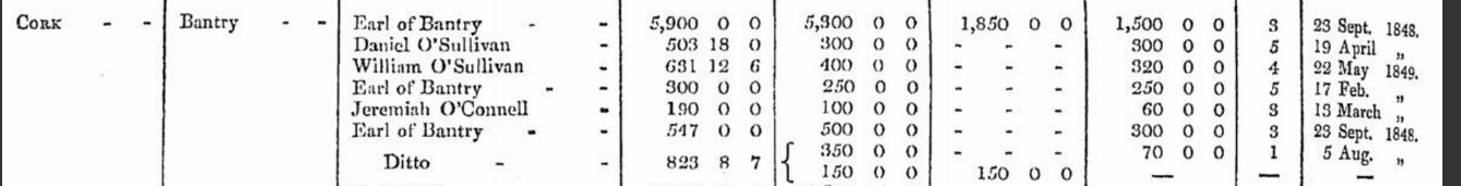 1851. Report of A. N. Neal, Inspector of Drainage on Land Improvement in South West Cork. Larger Farmers Precluded from Applying For Benefit of Land Improvement as They Did Not Possess Sufficient Legal Title under Act. Praise for William Bence Jones (Clonakilty). Rev. R. Wright (Probably Beecher Land Agent), Rev. John Triphook (Mizen Peninsula) Rev. Thomas Tuckey (Probably Drimoleague), Mrs. L. C. Kearney (Garretstown), Mr. John Moloney, William T. Hungerford (Rosscarbery), Henry Baldwin, Cornelius O’Callaghan, Rev. John Murphy (Probably Newtown , Bantry).