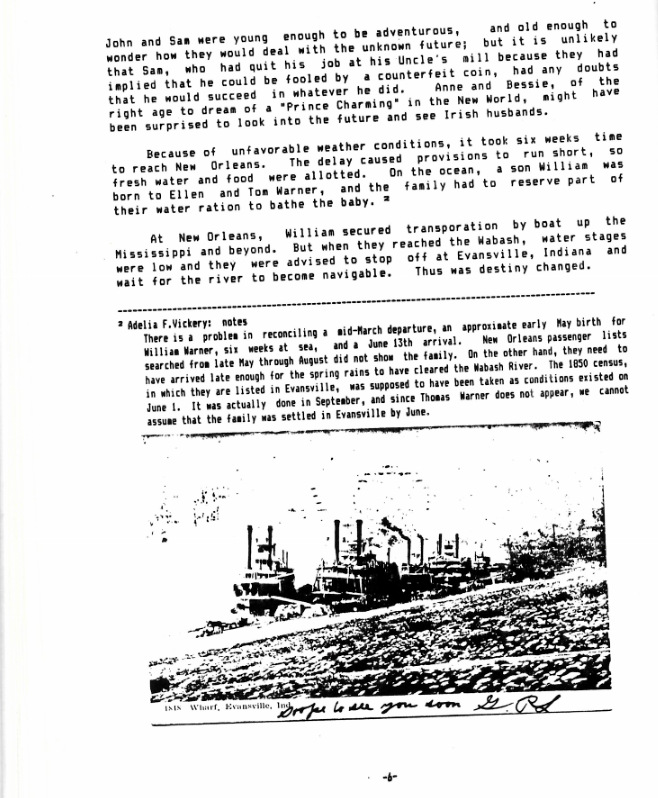 Samuel Vickery (1832-1912) Reminiscences to his Daughter Martha Ellen, Evansville, Indiana, USA, Childhood in Rooska, Parish of Durrus and Reendonegan, Bantry, West Cork, Family Fishery, Girls Hired to Spin Twine for Nets, Catching Sparrows in Thatch of House, Hens Fed Sour Milk and Potatoes, Punished at School at Four Mile Water (Clashadoo, Durrus) For Dipping Spider in Black Ink , Emigration 1850 to New Orleans Upriver to Indiana