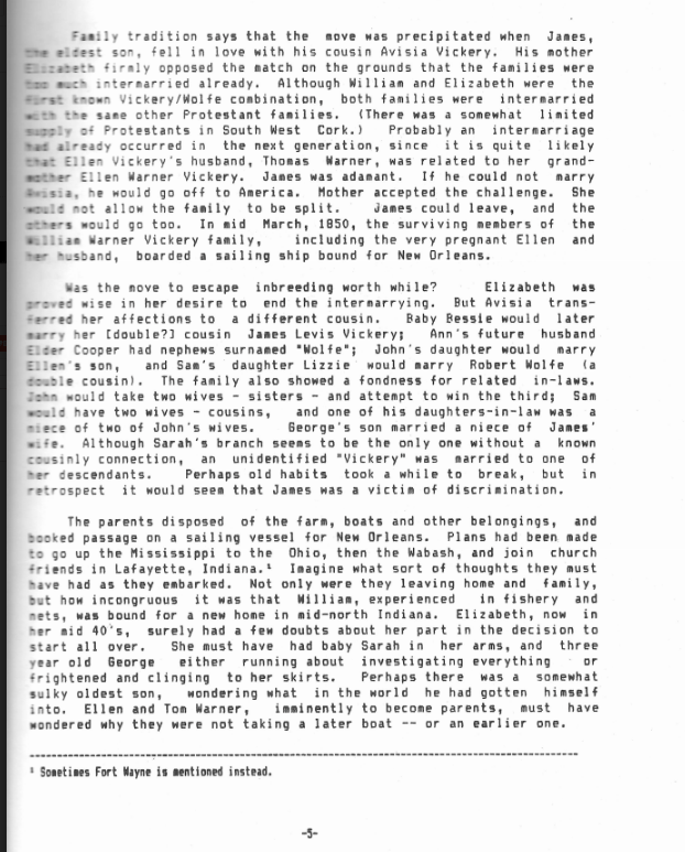 Samuel Vickery (1832-1912) Reminiscences to his Daughter Martha Ellen, Evansville, Indiana, USA, Childhood in Rooska, Parish of Durrus and Reendonegan, Bantry, West Cork, Family Fishery, Girls Hired to Spin Twine for Nets, Catching Sparrows in Thatch of House, Hens Fed Sour Milk and Potatoes, Punished at School at Four Mile Water (Clashadoo, Durrus) For Dipping Spider in Black Ink , Emigration 1850 to New Orleans Upriver to Indiana