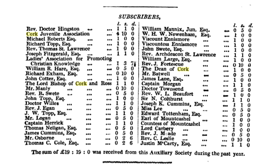 1829. Sunday Auxiliary School Society Cork. Committee, Patrons, Subscribers. 06 Tuesday Dec 2016 Original size at 571 × 346 ≈ Leave a comment