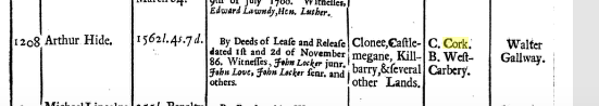 1710, List of the CLAIMS as they are ENTERED with the TRUSTEES at CHICHESTER HOUSE on COLLEGE GREEN DUBLIN, for Baronies of West Carbery Bantry and Bere including Baltimore, Sherkin, Clonee, Durrus, Reendonegan, Bantry.