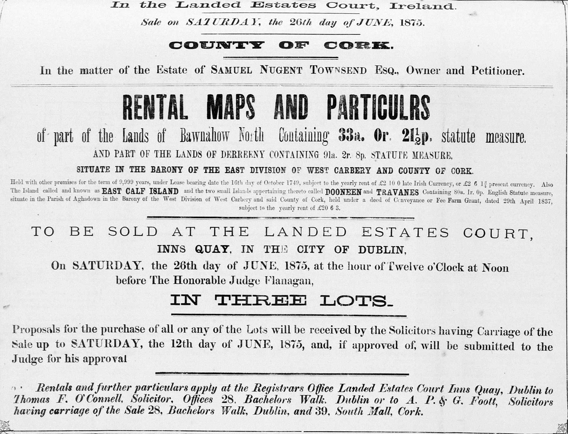 1875. Landed Court Sale of Samuel Townsend lands at Caheragh and Islands of East Calf, Doneen, Travans where Tenants Make Large Quantities of Kelp from Seaweed. 24 Friday Mar 2017 Original size at 2402 × 1837 ≈ Leave a comment
